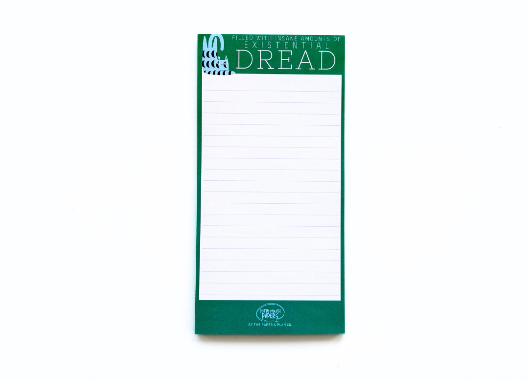 Meet the Existential Dread Notepad...the hilariously honest companion for life's big questions and everyday chaos! Embrace the dread, organize your thoughts, and remember...at least you're thinking about it all on a really fun notepad!