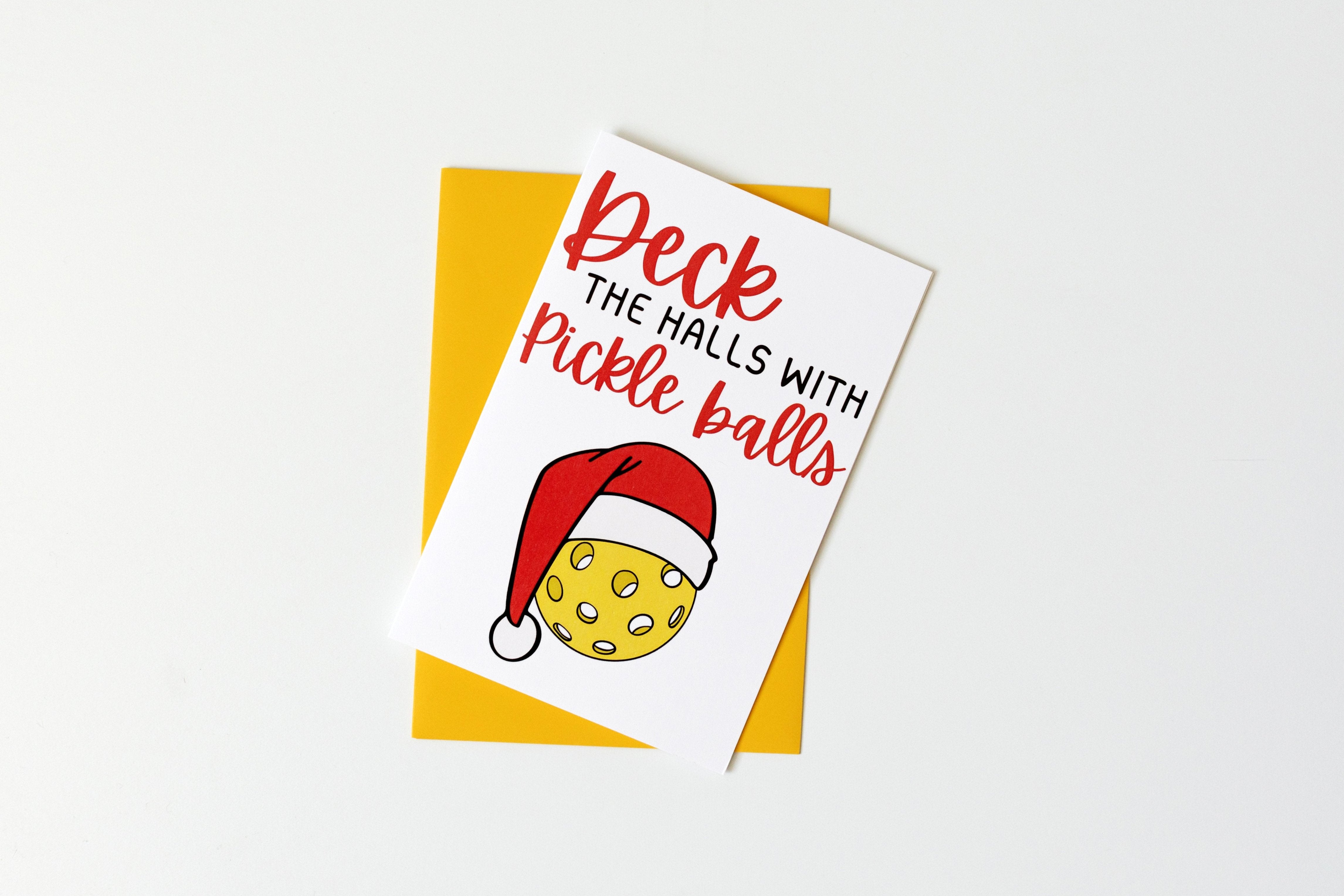 Spread holiday cheer with our Deck the Halls with Pickle Balls greeting card. Thoughtfully designed for the pickleball enthusiast in your life.