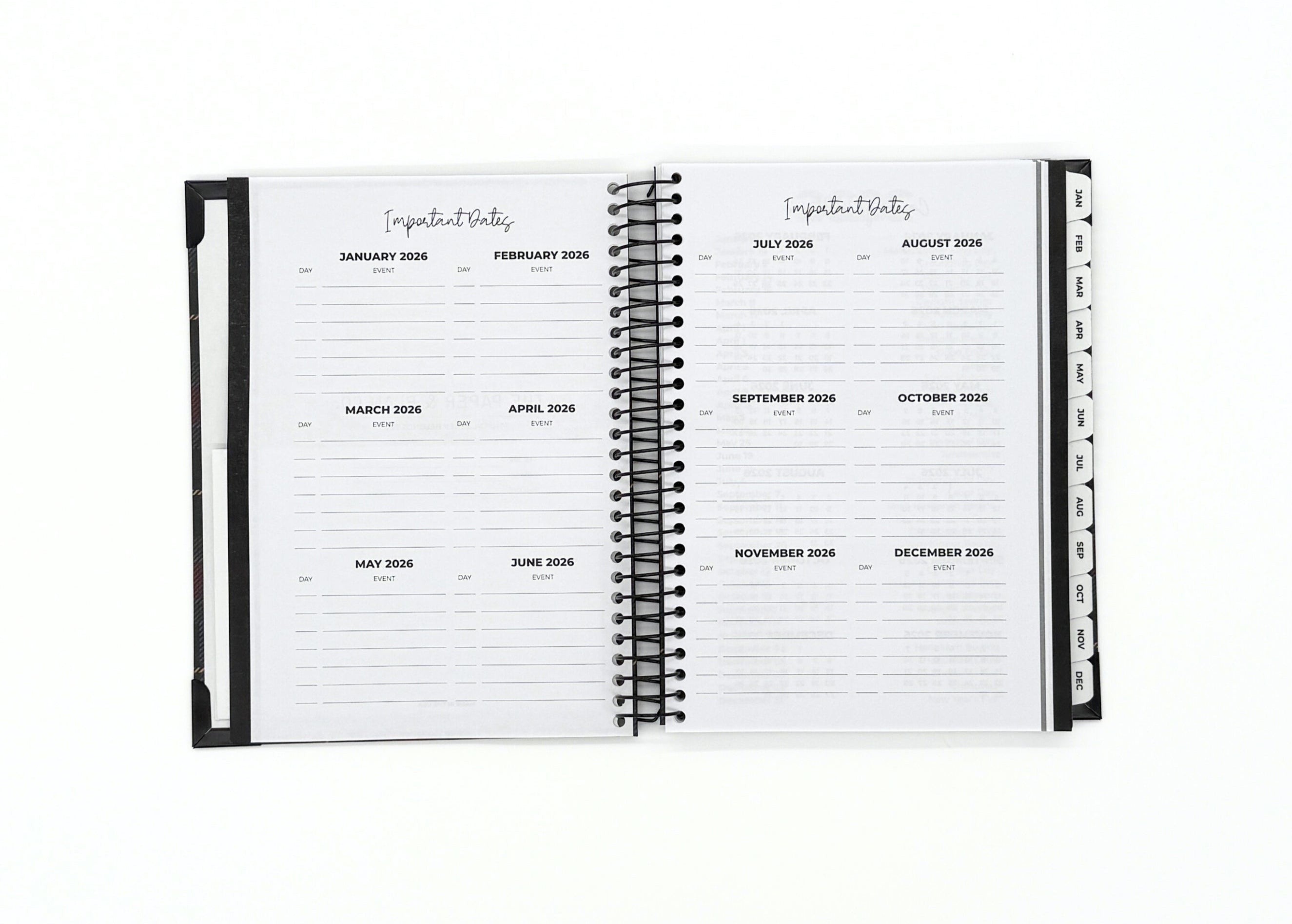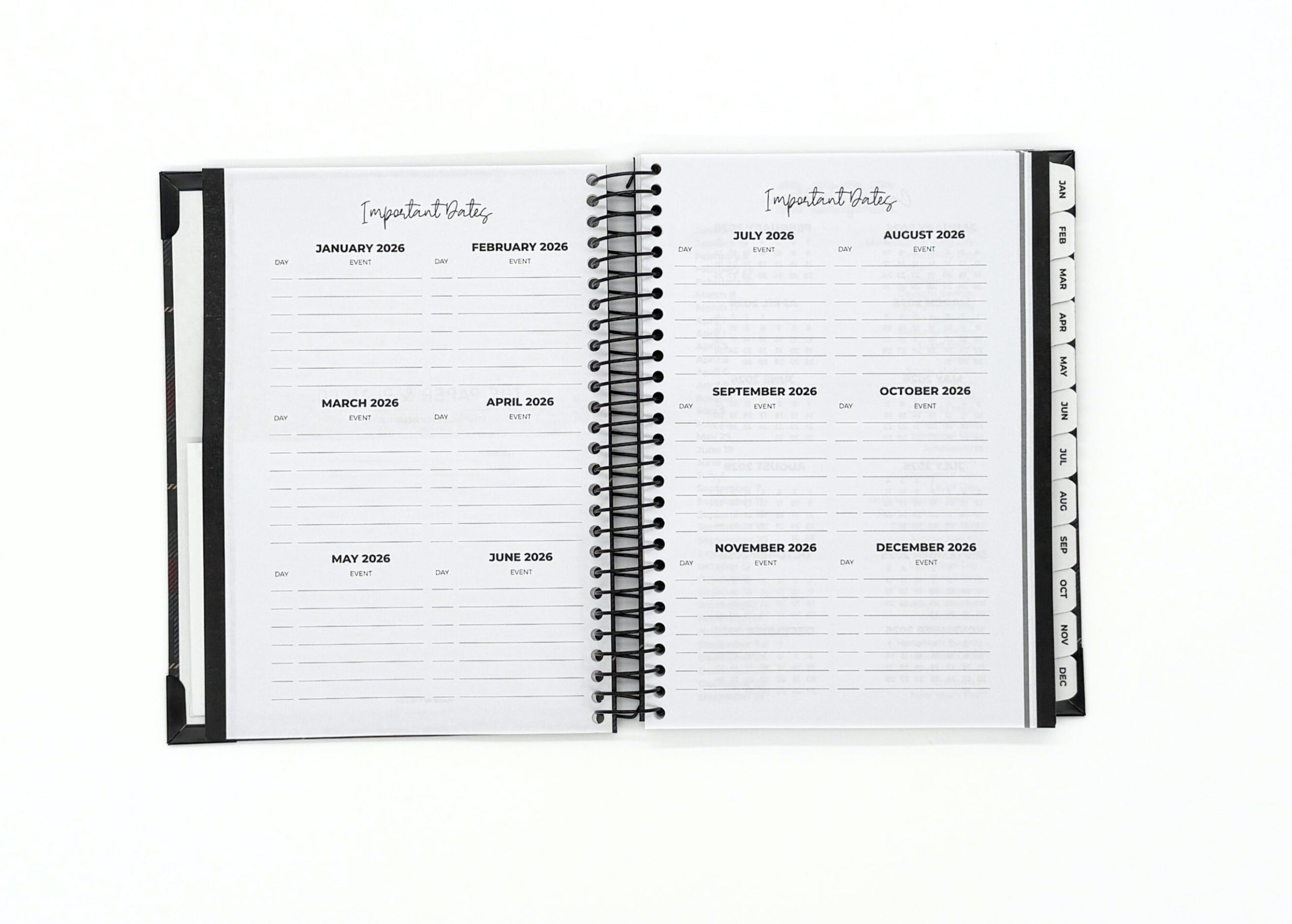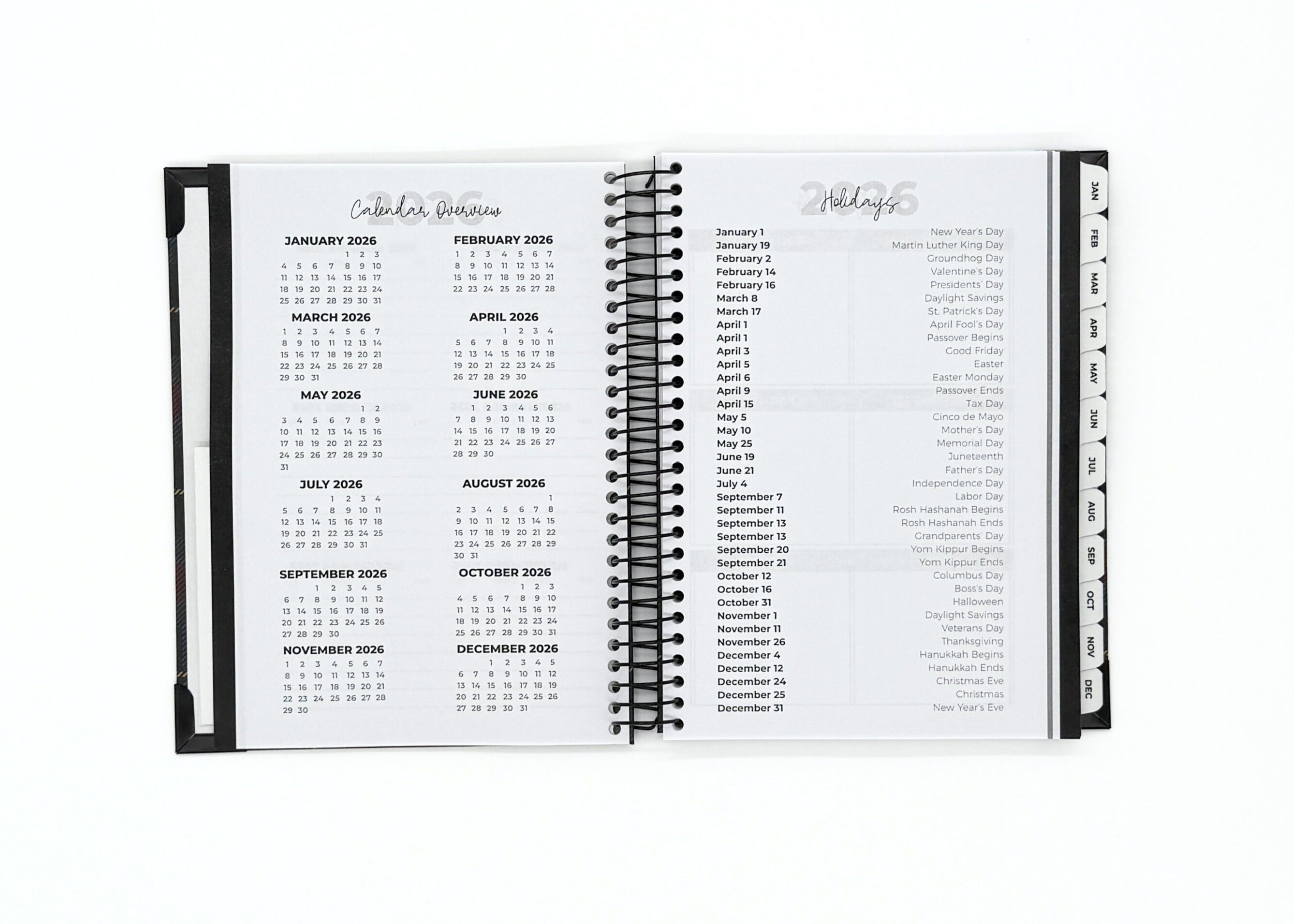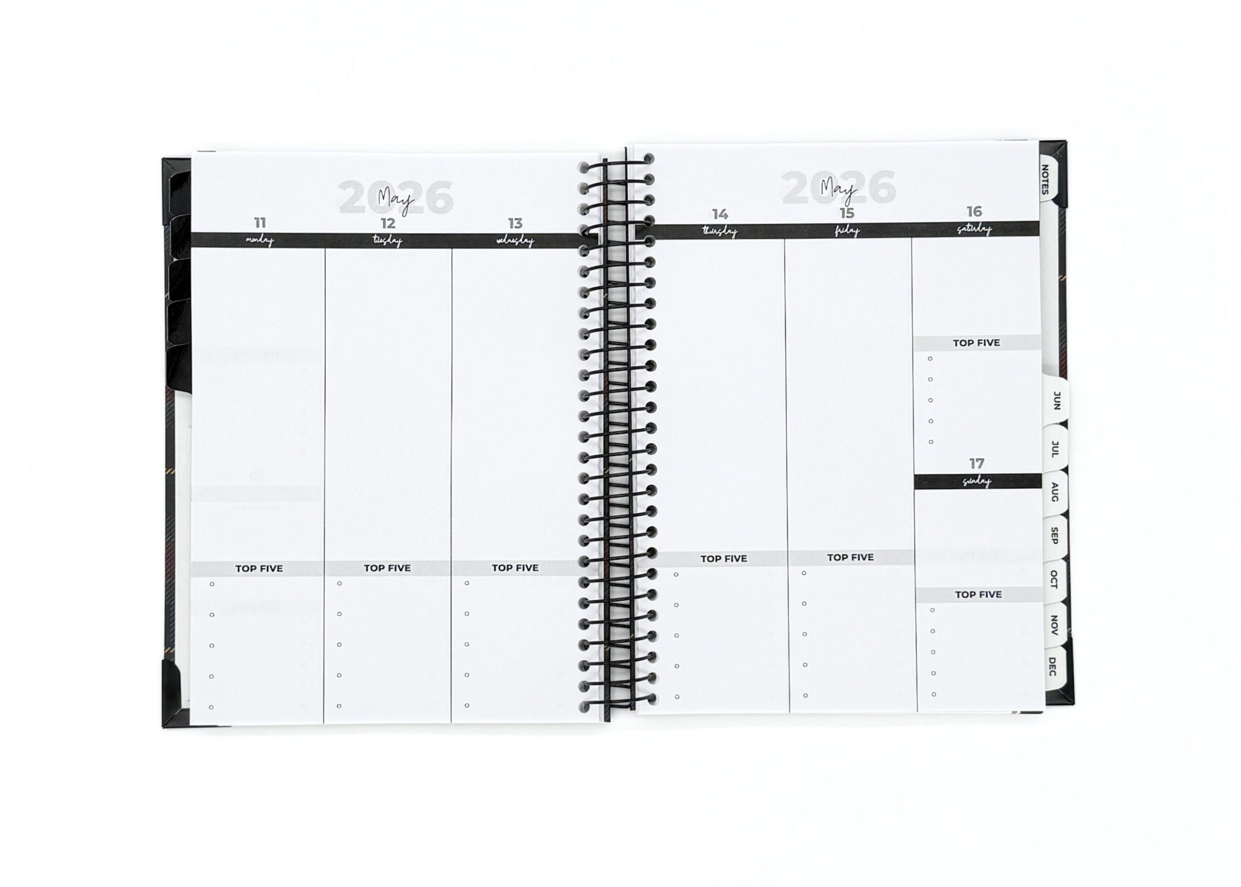 Your new planner is also as durable as it is sleek and attractive. Enjoy a black spiral binding so your planner can lay flat, reinforced corners that won't bend or break, and an extra durable cover with a gorgeous finish.
