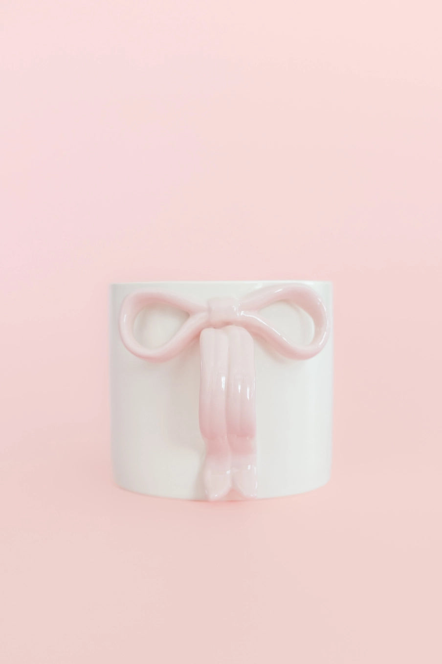 Blush Pink Bow Ceramic Coffee Tea Mug with Ribbon Handle