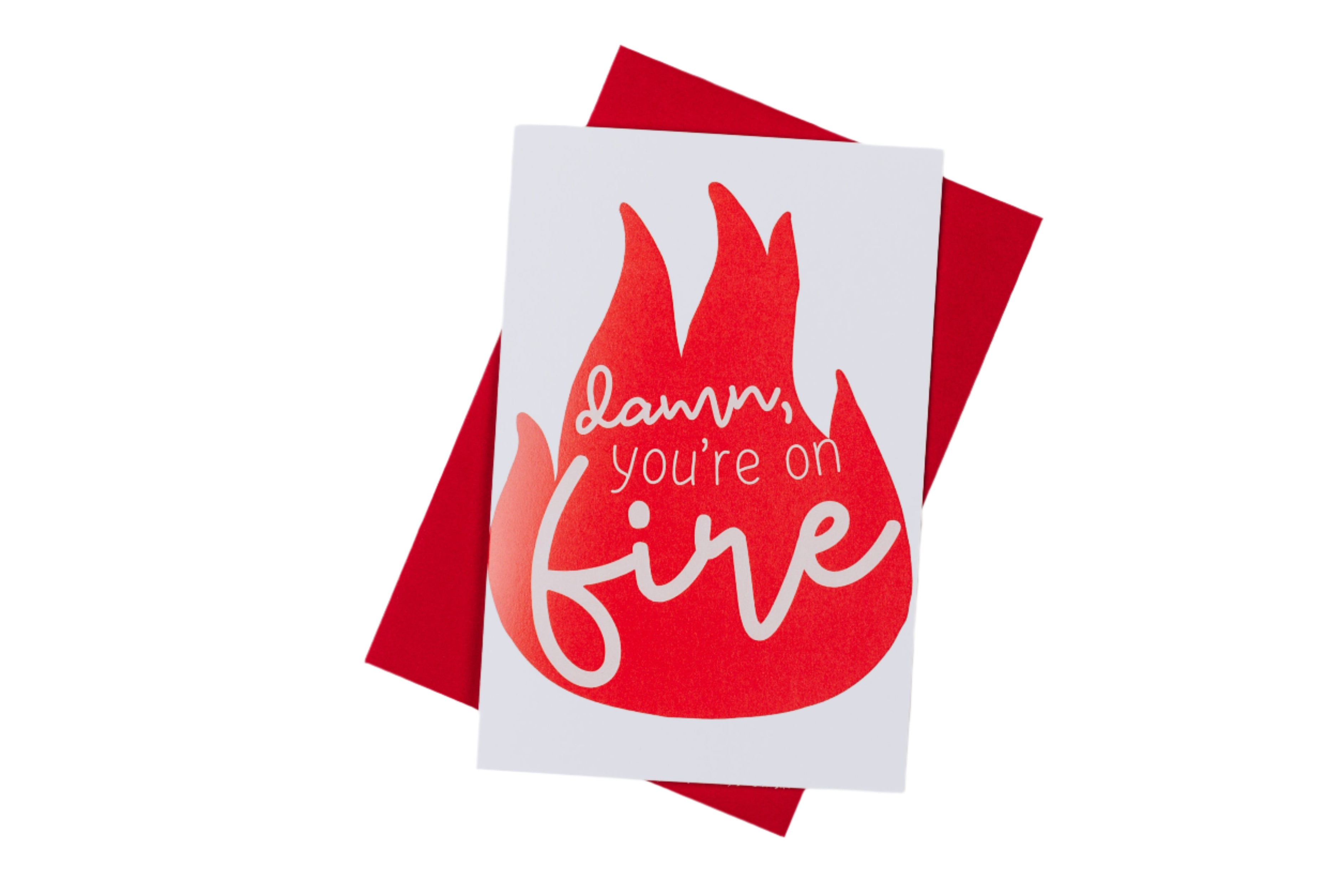 Boost someone's confidence with our Damn, You're On Fire Card! This 4x6 greeting card, complete with coordinating envelope, is made in the USA and delivers a playful and quirky message of encouragement for a job well done. Keep the fire burning!