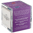 This set of conversation starter questions will help you rekindle, reconnect and reveal two interesting and intriguing people who fell in love. It’s amazing what a little “creative couple-time” (aka a date night) can do! 135 question cards in a 4" x 4" x 4" clear, acrylic cube. Ages 21 and up.