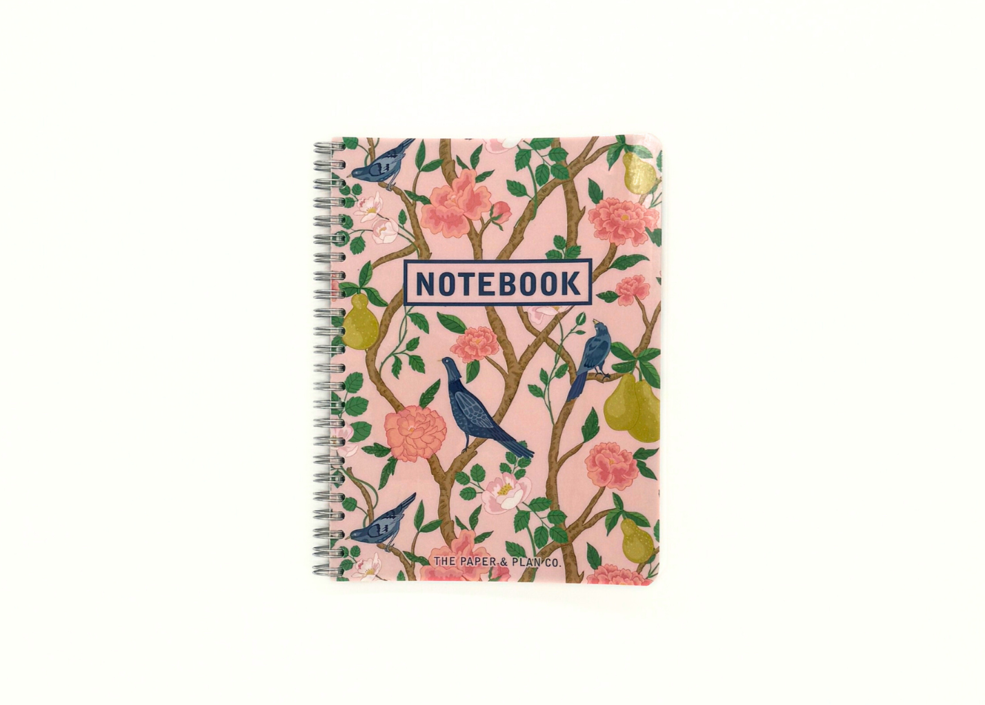 The Pink Pear Tree Notebook is as durable as it is sleek and attractive. Enjoy a silver spiral binding so your notebook can lay flat and an extra durable cover with a gorgeous finish.