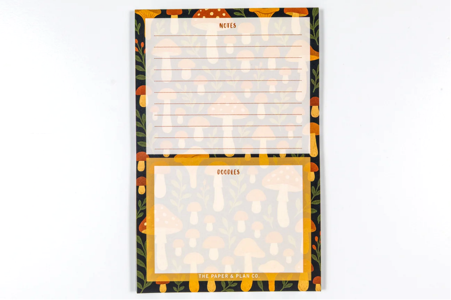Track down all your notes and doodles with the Mushroom Doodle Notepad, a whimsical way to keep your thoughts organized. Decorated with charming mushroom illustrations, this notepad invites your creativity to sprout on every page.