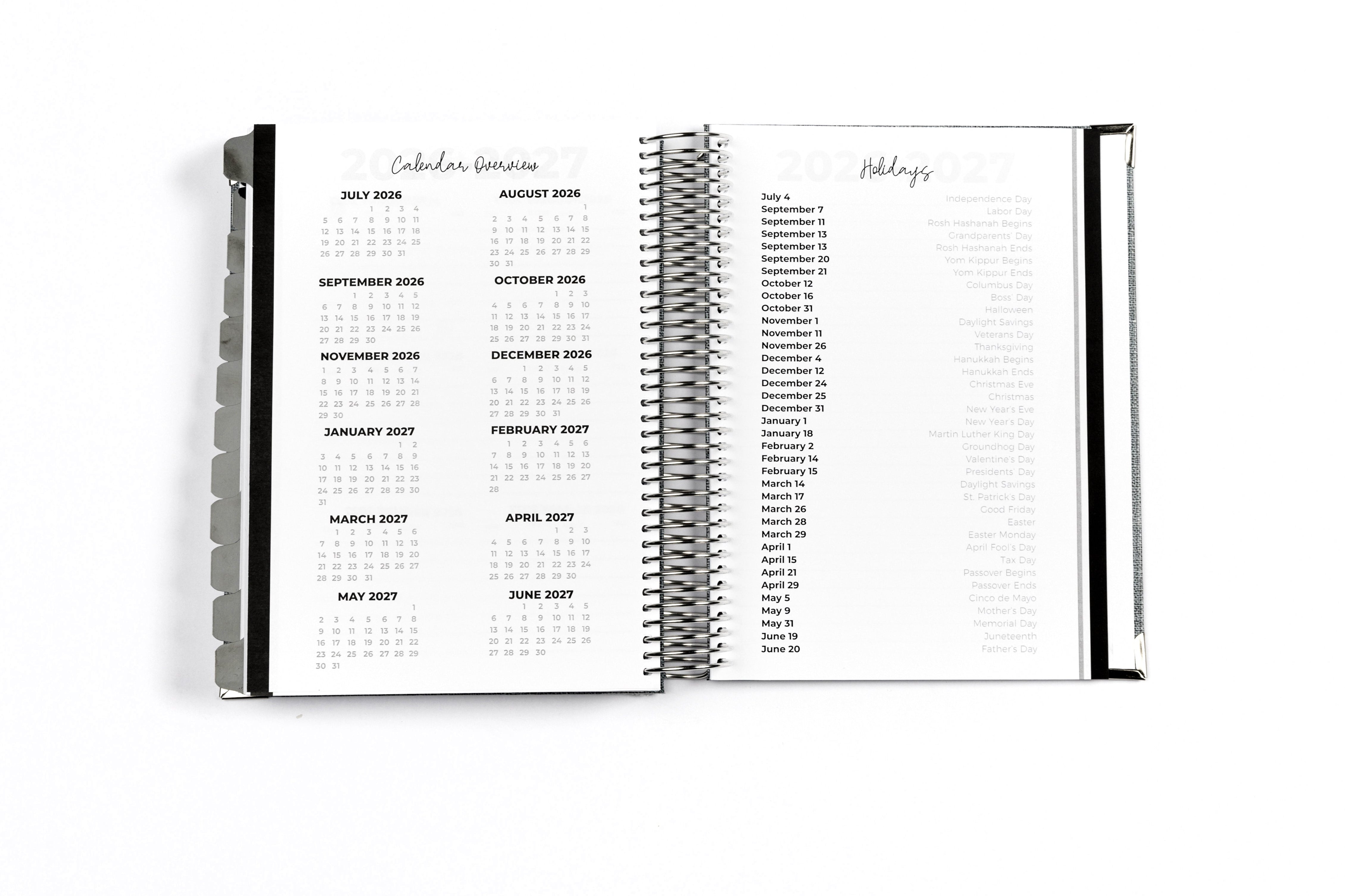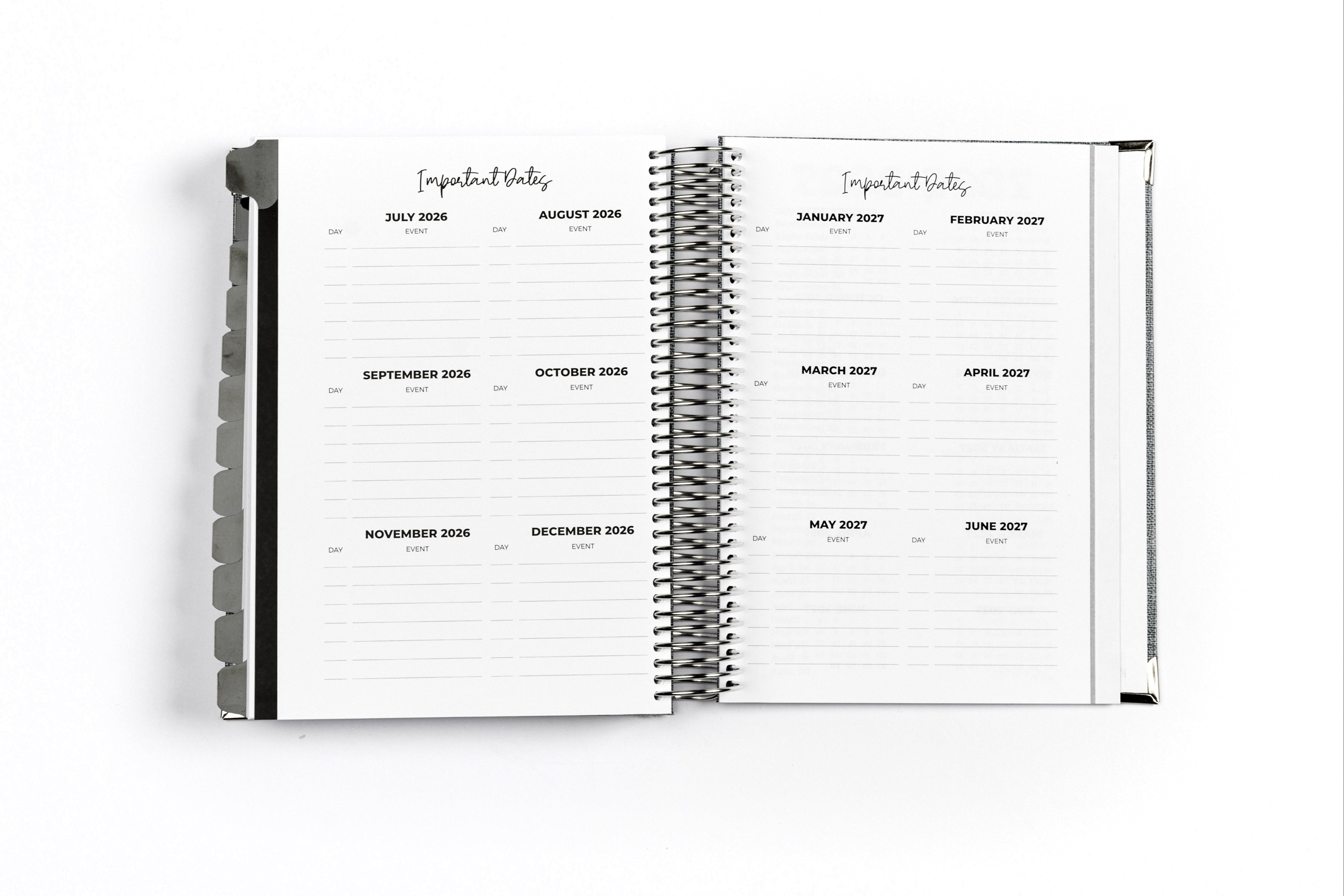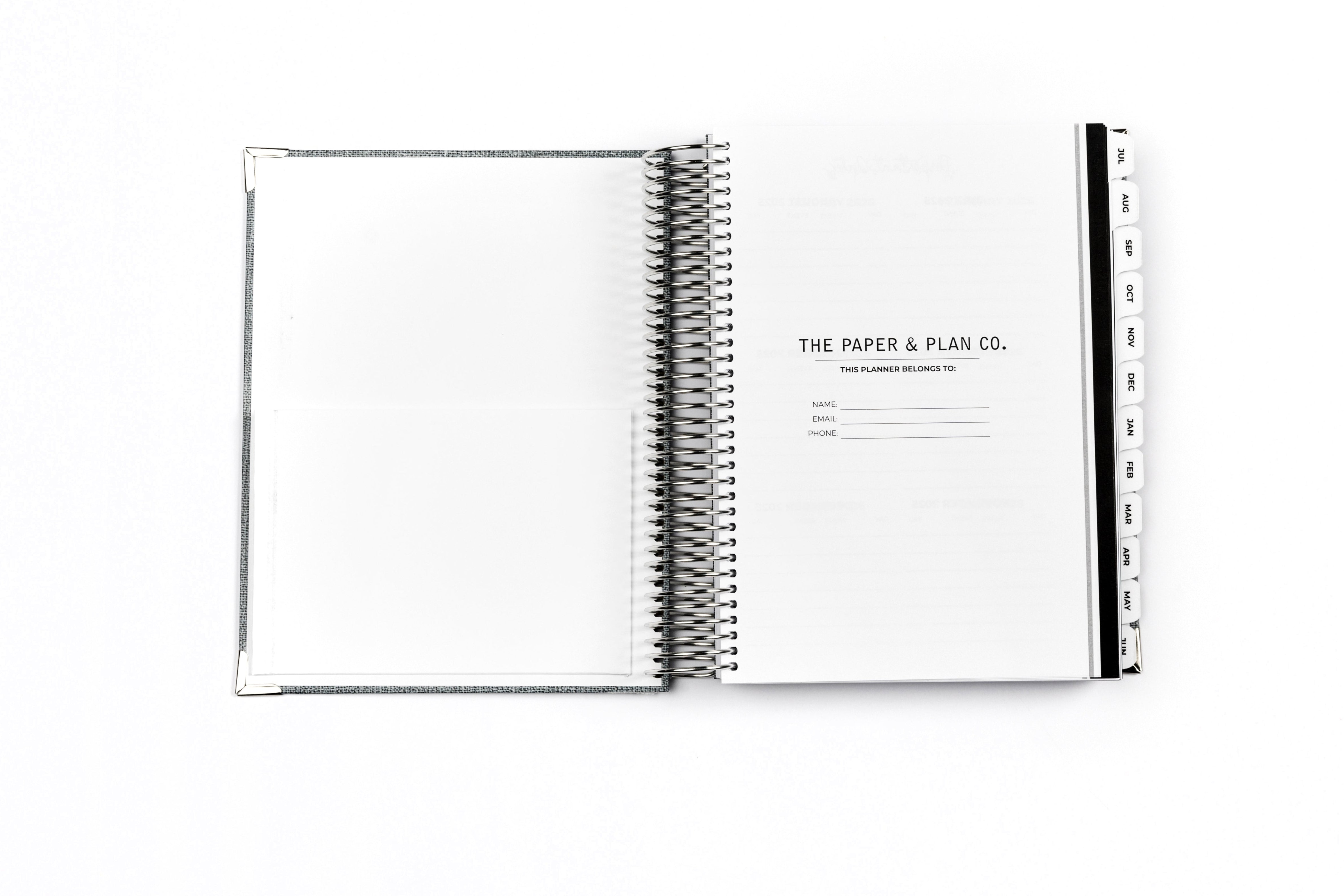 Your new planner is also as durable as it is sleek and attractive. Enjoy a silver spiral binding so your planner can lay flat, reinforced corners that won't bend or break, and an extra durable cover with a gorgeous finish.