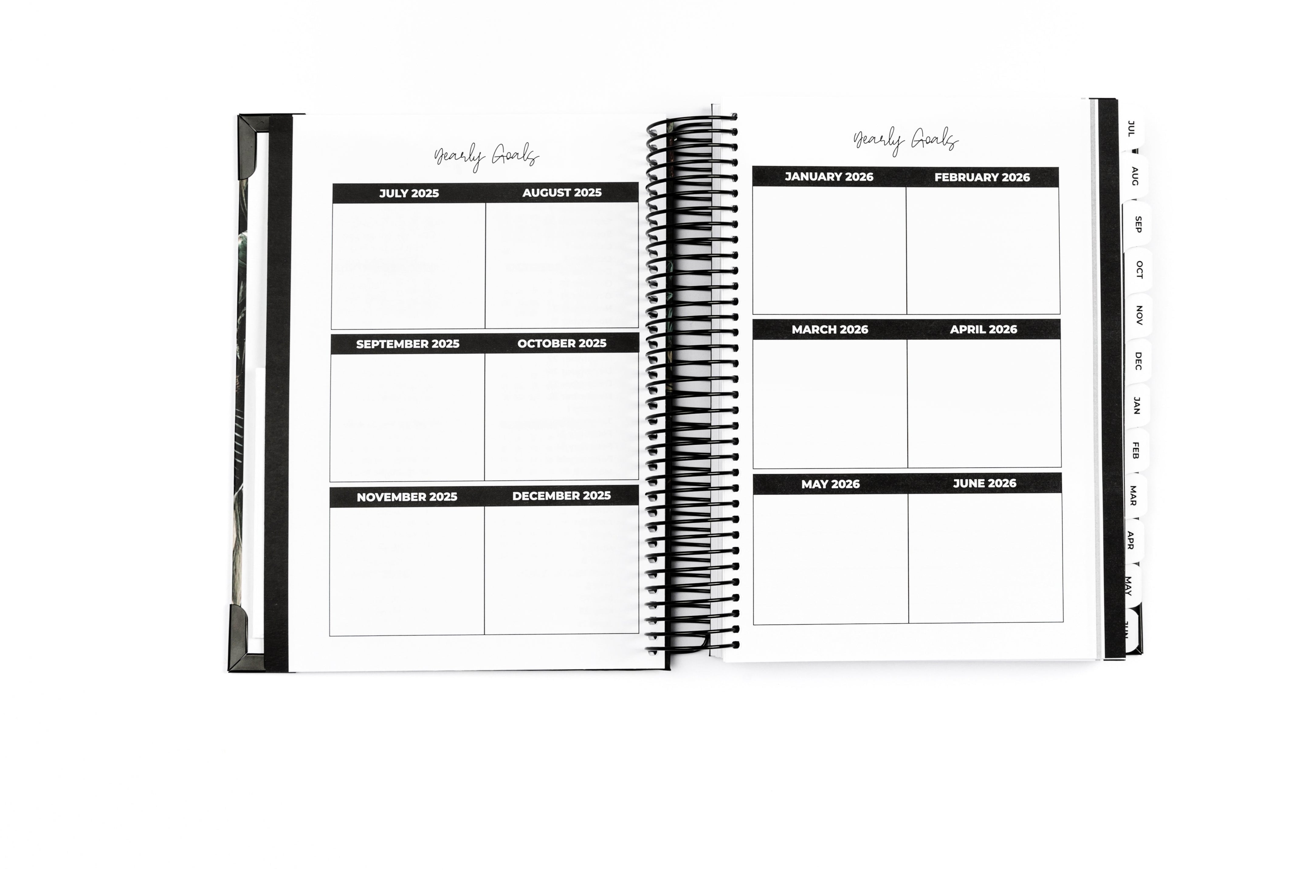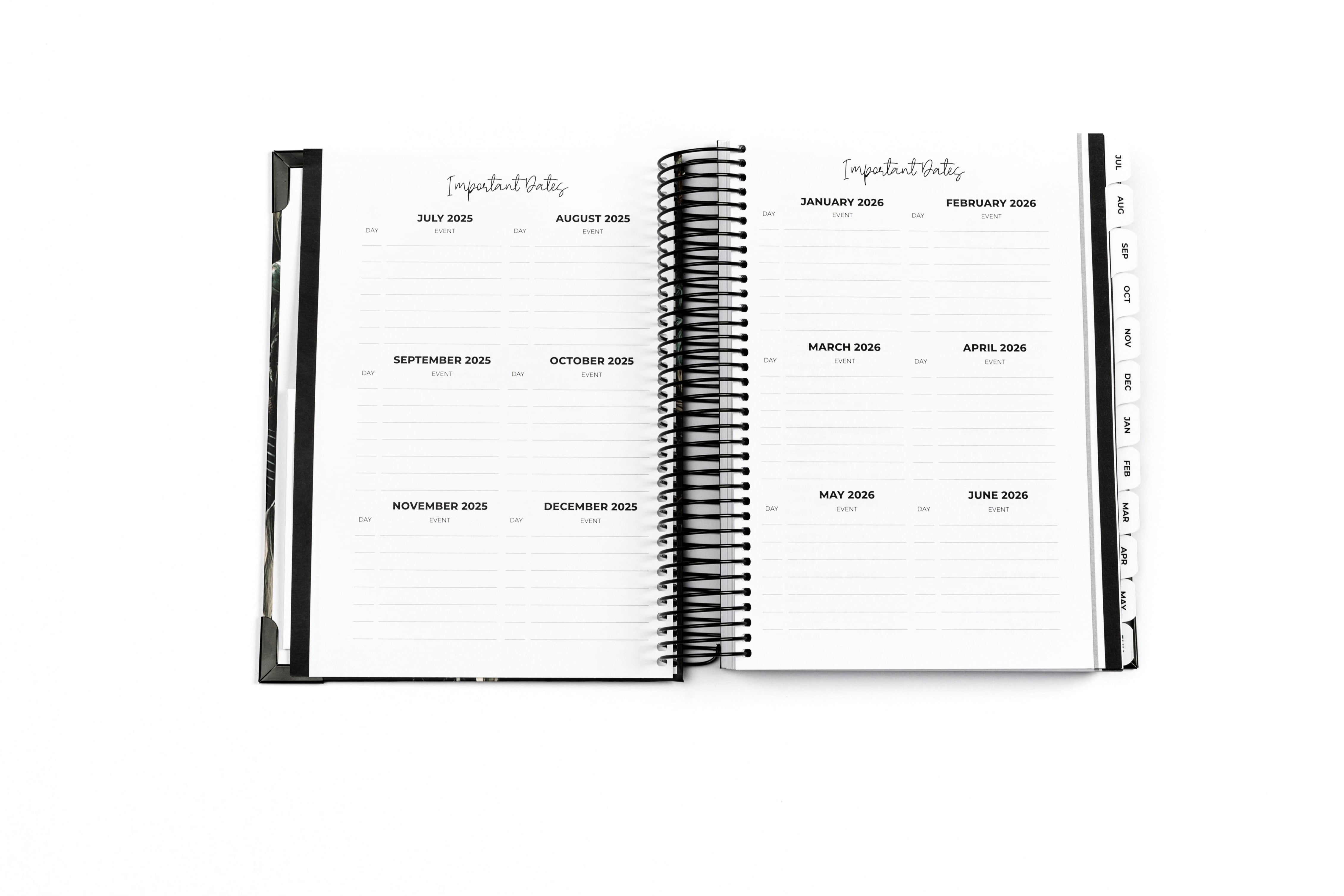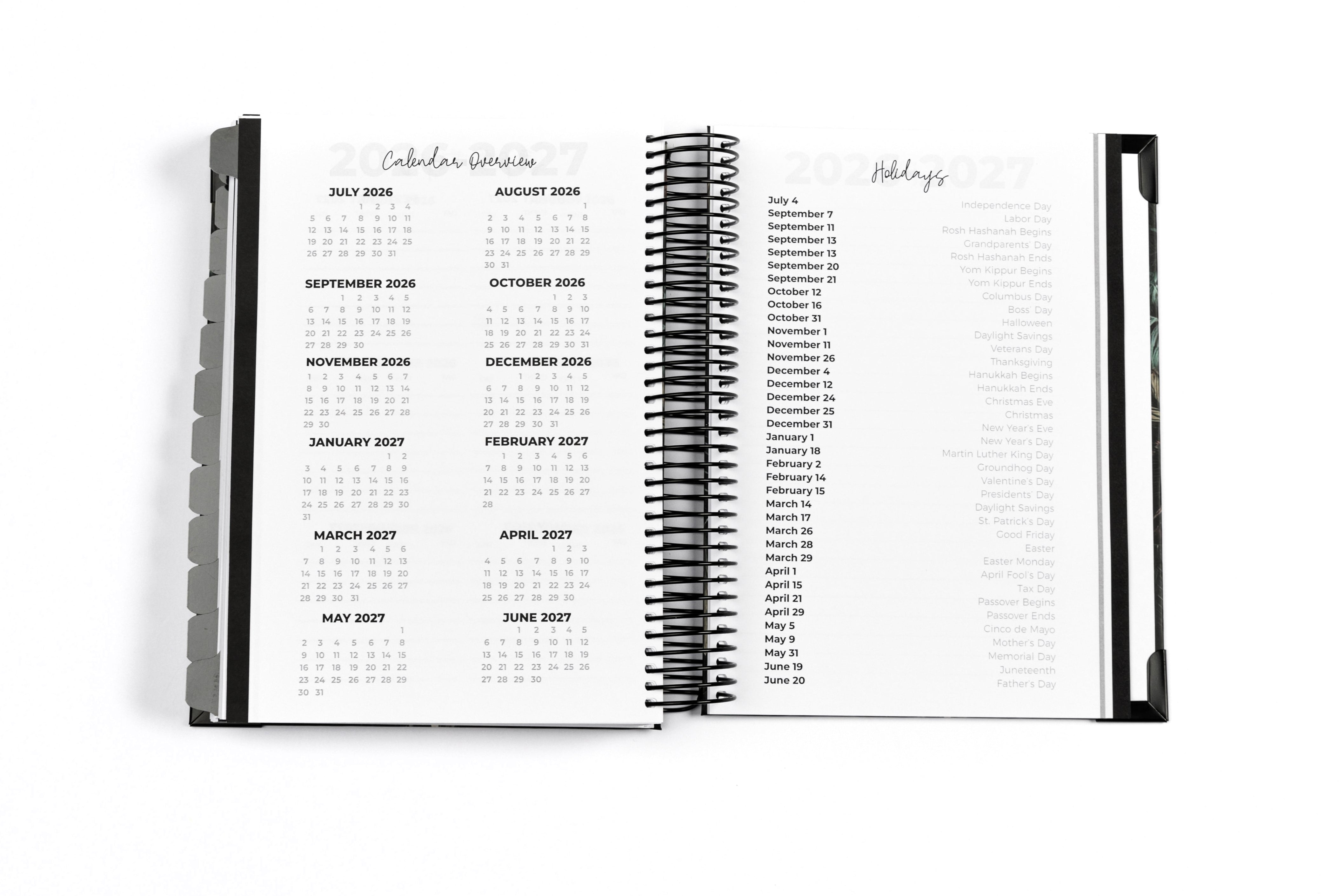 Your new planner is also as durable as it is sleek and attractive. Enjoy a black spiral binding so your planner can lay flat, reinforced corners that won't bend or break, and an extra durable cover with a gorgeous finish.