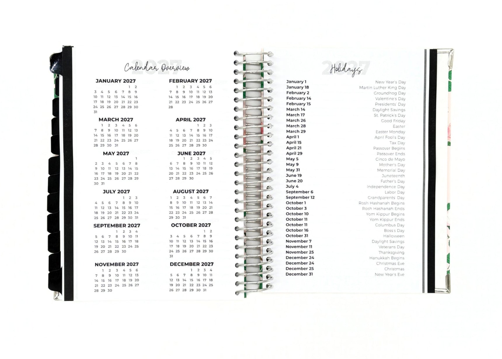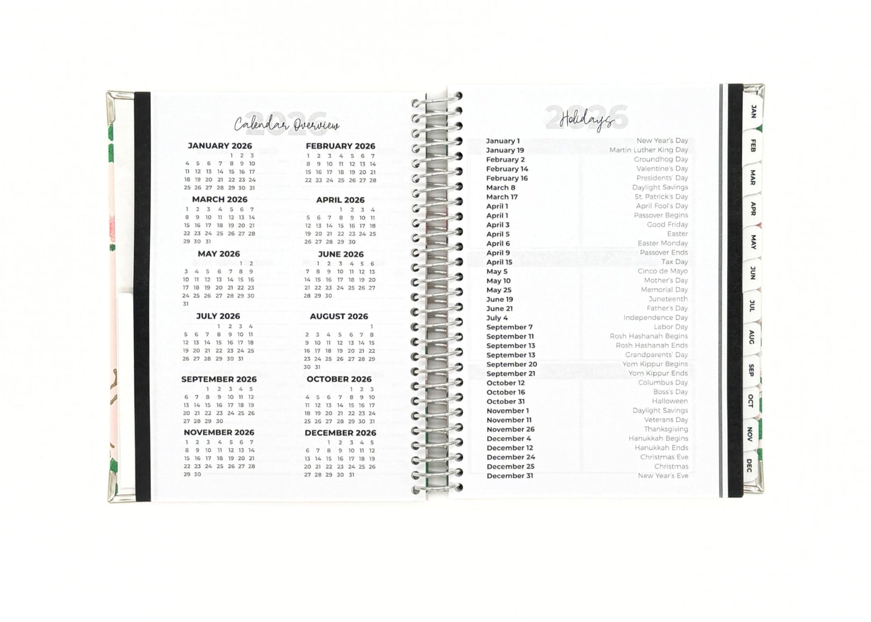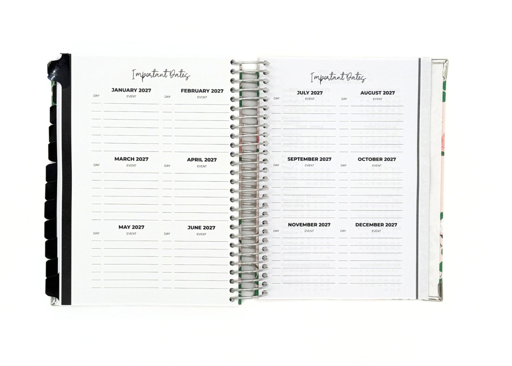 Your new planner is also as durable as it is sleek and attractive. Enjoy a silver spiral binding so your planner can lay flat, reinforced corners that won't bend or break, and an extra durable cover with a gorgeous finish.