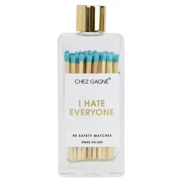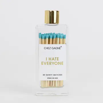 I Hate Everyone - Glass Bottle of 40qty Teal Tipped Safety Matches