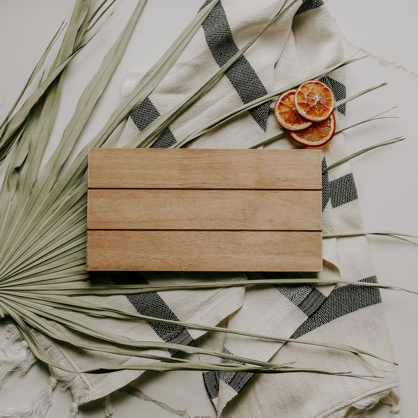 Our Natural Wood Rectangular Tray is the perfect addition to any modern kitchen, bathroom, and home. The Paulownia wood tray gives countertops an elevated look while holding everything in style from scented candles, soap dispensers, reed diffusers, and more.