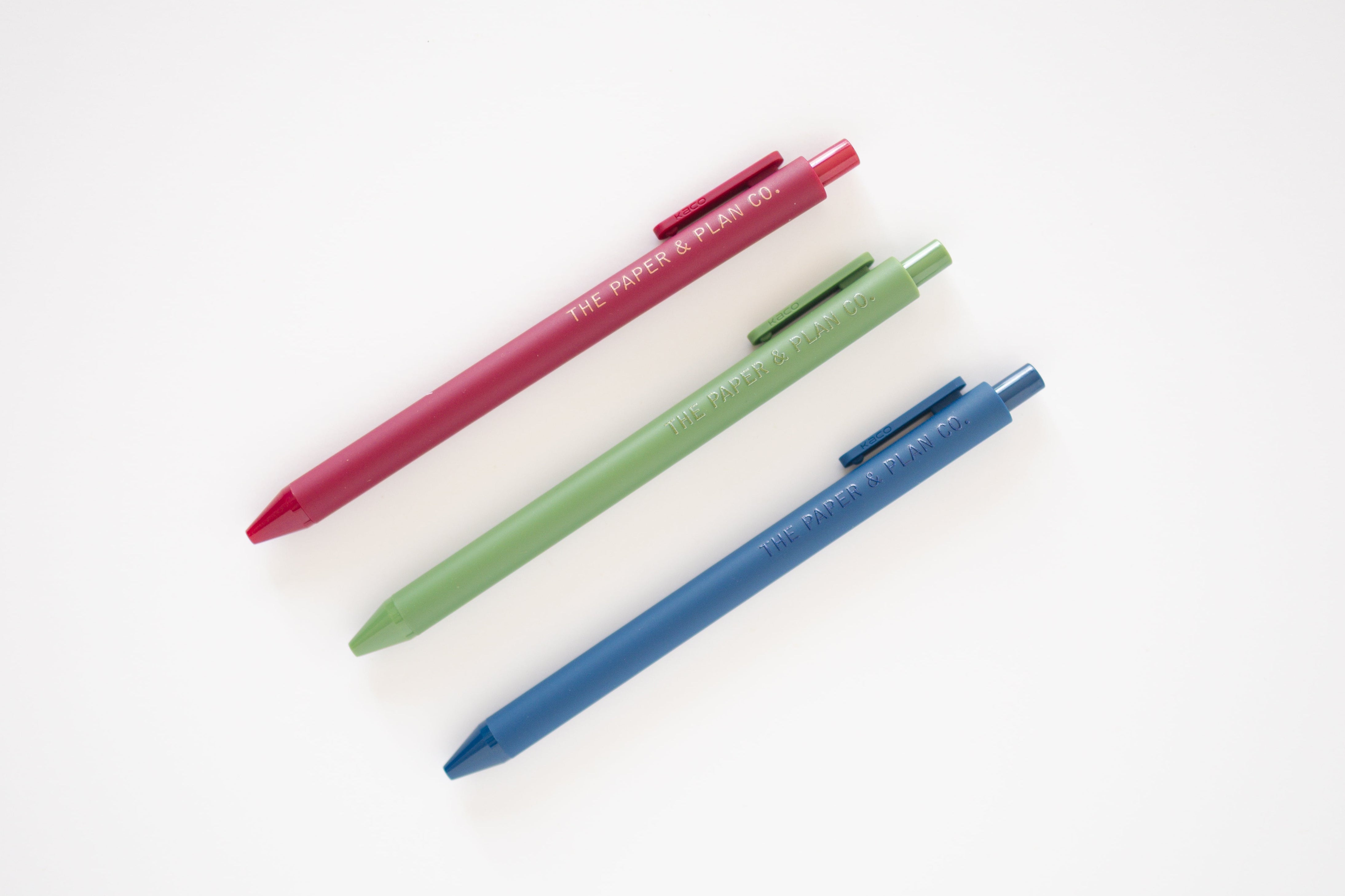 This set matches perfectly with the Plaid Planner. With smooth touch barrels, these pens have a fine tip and flow beautifully with no bleeding. Pen colors are Olive, Navy and Luxardo and write with black ink.
